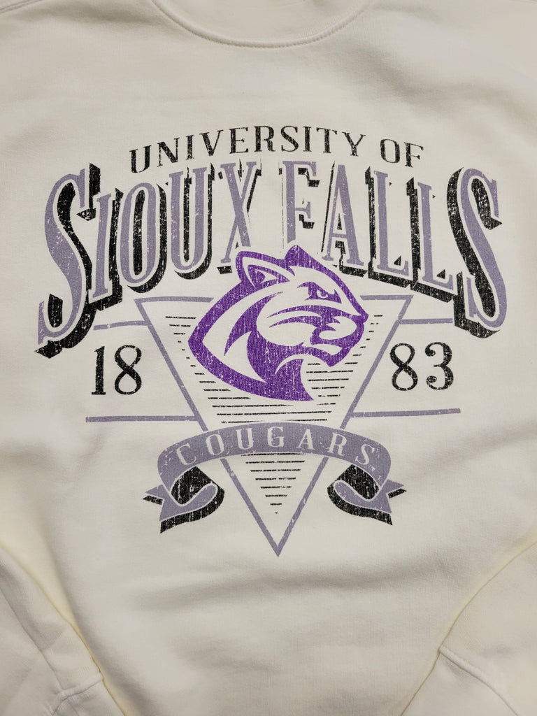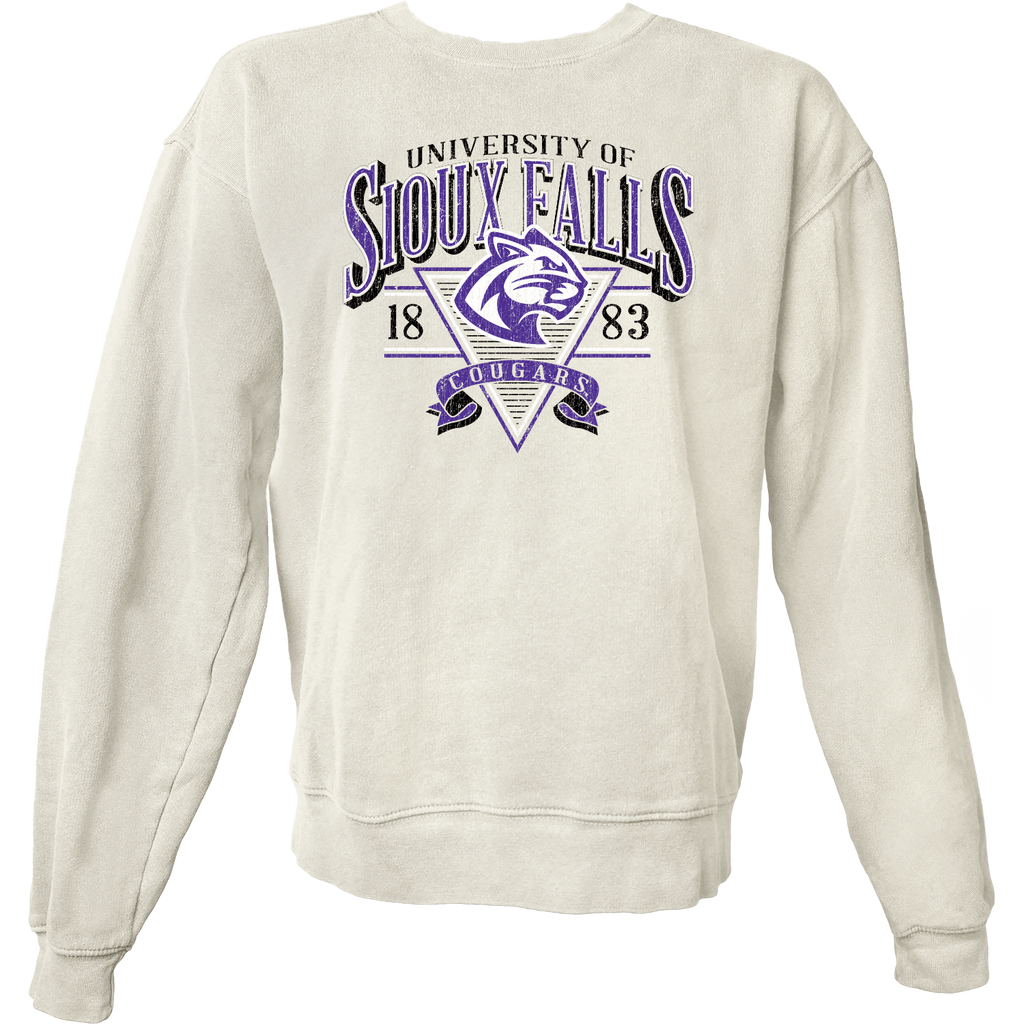 Back in stock due to high demand! Show your Cougar Pride in this favorite garment dyed sweatshirt! This super soft pigment dyed ringspun fleece crewneck comes with an awesome, oversize 90s inspired graphic available in two colors. See additional photos of the ivory crew for a more accurate ink color depiction.